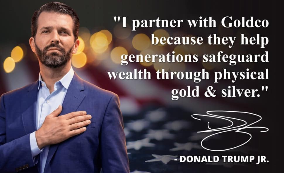 Goldco is proud to partner with Donald Trump Jr., American businessman, political activist, and the eldest child of Donald Trump, the 45th and 47th president of the United States. As a trustee and Executive Vice President of the Trump Organization, Don Jr.’s extensive experience as a global dealmaker provides a unique perspective on navigating today’s economic shifts and helping to achieve financial security.